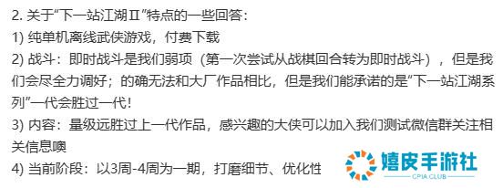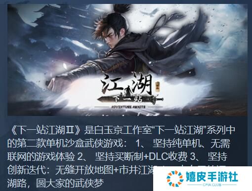 3、而steam页面的官方人员答道,下一站江湖2是白玉京工作室的第二款单机沙盒武侠游戏,坚持纯单机、无需联网的游戏体验。