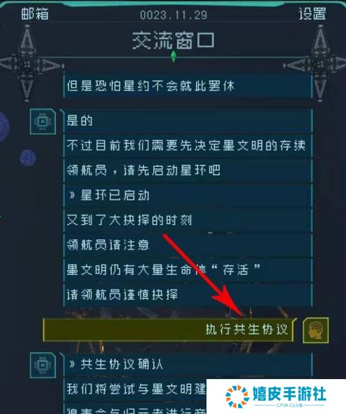 2、在交流窗口的剧情里选择【机械嬗变】后。