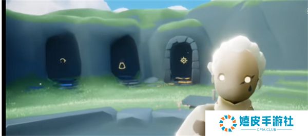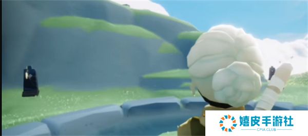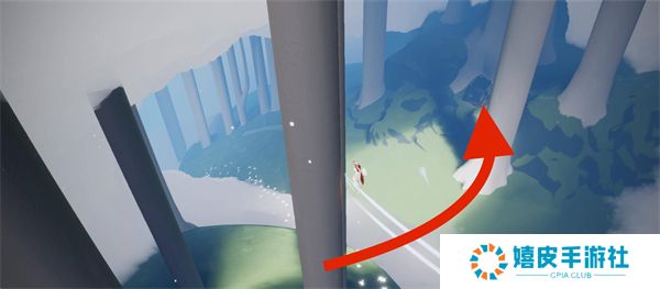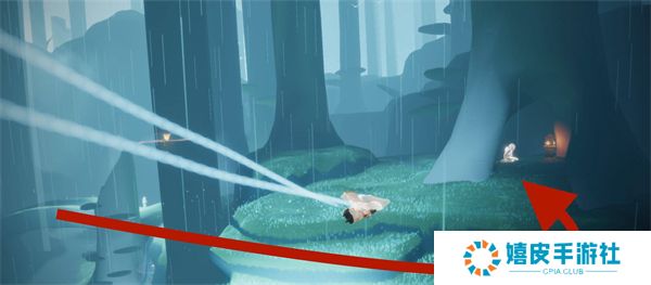 4、到达荧光森林,再往右前方飞,桥右侧的树洞中即可找到先祖。