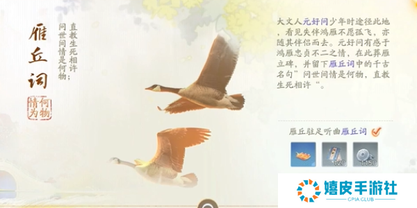 13、雁丘词 获得方法:听曲处完成听一曲