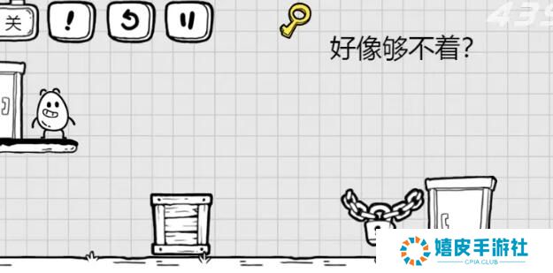 第37关: 按住怪物旁边的洞口,拿到钥匙,进门过关 第38关: 在刺碰到之前跑出后,进门过关 第39关: 反复滑动篝火,起火后拖到冰面上解冻,进门过关 第40关: 点击左边的门后,点击右键,进门过关 第41关: 这一关玩家将铁箱放在木箱上面,然后茶叶蛋去顶铁箱就可以获得钥匙了,然后开门过关 第42关: 开局的时候门会跳入水中,之后点击左边下面的向右移动按钮,移动该按钮可以将出水管打开,等水位下降后进门即可