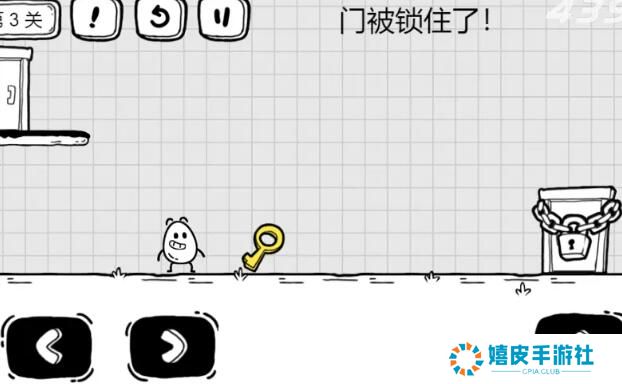 第7关: 开门后门会和你一起动,用鼠标一直点住门,门就不会动,可以过关了。 第8关: 把气球戳破,然后直接跳过去就行了。 第9关: 这关无需拿到钥匙,直接把锁挪出来就行。 第10关: 这关需要我们在合适的时机击破两个气球进入门中。 第11关: 一直按跳跃键,找到天花板上的门,进门过关 第12关: 把水龙头拖到地刺上空,进门过关