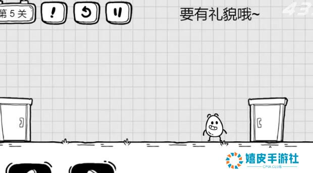第43关: 用手指挡住毛球的眼睛,进门过关 第44关: 首先将一个门推出去,推出去后将箱子扔至最高的位置然后摔碎,摔碎后可以获得钥匙成功过关 第45关: 将上面的火堆摩擦出火,然后茶叶蛋走进火堆中,变成红色的茶叶蛋,然后进入前面的冰面上进门即可 第46关: 将最左边的“第46关”下拉,拉下来后茶叶蛋跳上去,然后上拉到上面的位置,从上面往下面走进门即可 第47关: 往前面走几步会出现毛球怪,将左边的门放在我们前面,然后把门打开,这样毛球怪就会进门了,我们走进右边的门过关 第48关: 这一关玩家中只需要将三个帽子全部打开即可过关