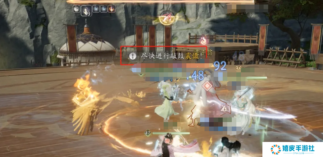 2、在玩家攻击BOSS时候会出现提示【敲鼓】,此时去大鼓处进行敲鼓;
