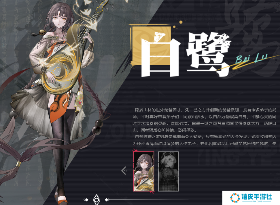 十二、白鹭 人物介绍 1、隐居山林,十分擅长琵琶,有许多的弟子。 2、喜欢带着自己派别的弟子一起跋山涉水。