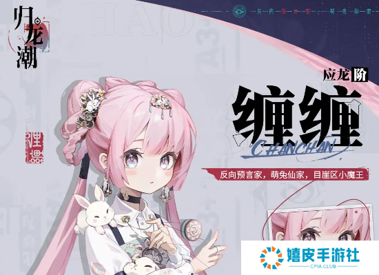 三、缠缠 人物介绍 1、目崖区小魔王,长相可爱还有一群兔兔围绕在身边。 2、能力是预言,可以预知到即将发生的事情。