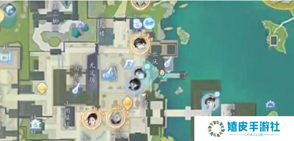 四、快活林密室 1、先拿到金钱帮密信,打败小怪获取残缺密信后合成(玩家需去图示三个位置击败小怪)
