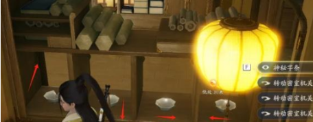 三、画舫密室 1、屋子左边有屏风、纸条和碗的房间就是密室入口。
