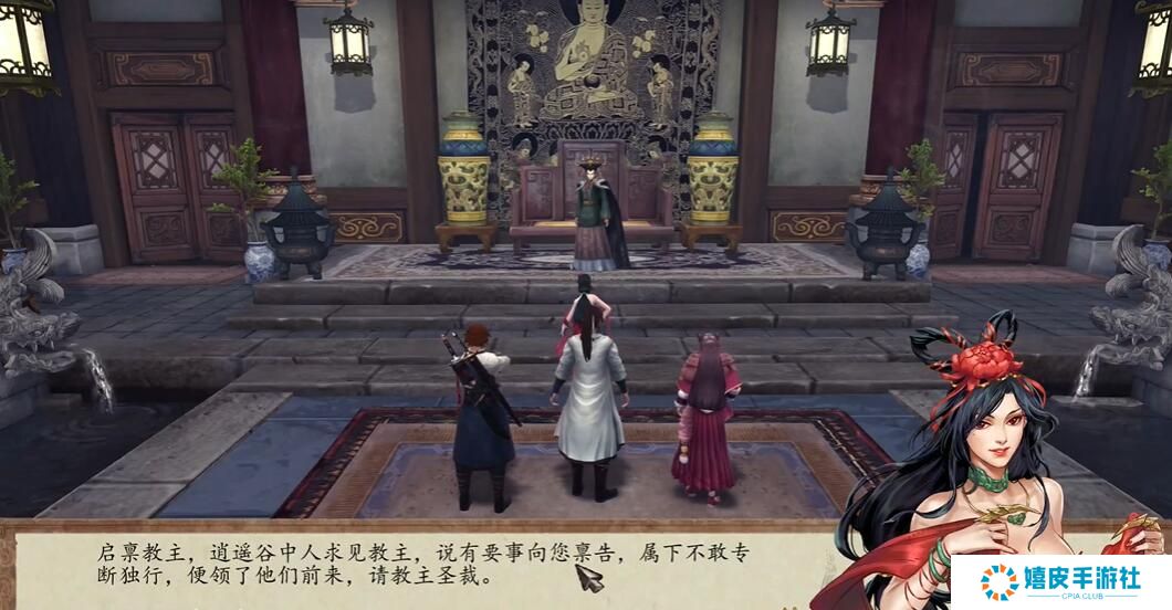 2、接着我们需要进行一场战斗,触发剧情后来到天龙教教主处。