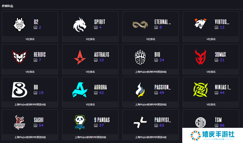 首轮对阵:  上海Major欧洲RMR B G2   NIP Spirit   B8 EF   Aurora VP   Passion UA Heroic   PARIVISION Astralis   9 Pandas BIG   Sashi 3DMAX   TSM 值得关注的点 阵容最后一舞 G2盼传奇组名额 这应该是G2阵容的最后一个RMR和Major了,大家都期望这支队伍能够在最后一个Major中能够捧杯成功, Nikola Kovač | NiKo也能够成功圆梦,**离场,而这其中的第一步RMR就至关重要。传奇组名额意味着可以少打一个阶段,也意味着队伍的赛训和赛前准备时间会更充分一些。G2近期的状态大家有目共睹,除了IEM里约短暂失利以外,BLAST秋决和世界总决赛的接连捧杯给予了他们和粉丝们极大的信心。但按照G2以往的RMR表现来看,稳定是最需要担心的事情,G2的BO1非常容易翻车,尤其是在强者如云的B组,如果他们能够接连拿下两个BO1,那么传奇组名额应该能够轻松到手了。