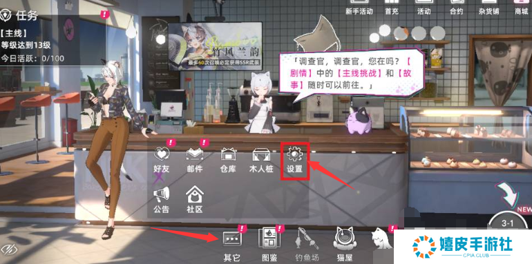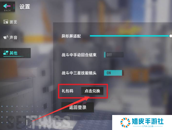 二、兑换码使用方法 1、首先打开游戏进入主页面,点击最底部的【其他】选择【设置】功能;