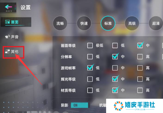 2、之后在设置功能页面,点击左侧的【其他】进入专区;