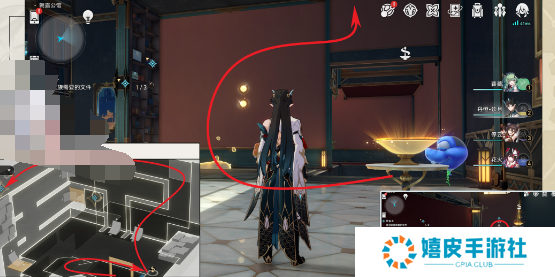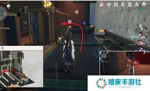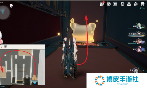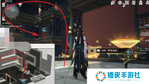 3、前往到房间右边获得【梦泡】,再从右边桥梁上去绕道房间左边看到第一个宝箱;