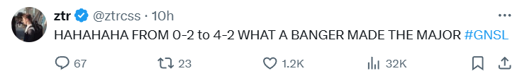 ztr:“从0-2到4-2,真是精彩绝伦,达到了Major这个重要的里程碑。”