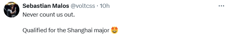 volt:“永远不要低估我们。我们已成功晋级上海Major。”