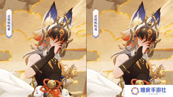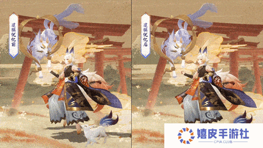 △同时,寮办还对登场动作的表情进行了优化。白藏主摘下面具的瞬间将露出尖尖虎牙,更显少年的可爱和帅气~