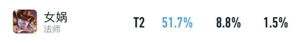 在全分段里,51.7%胜率+10.3%BP率,算不上非常亮眼,但别忘了,昨天女娲的胜率可是仅有49%的,相当于1天就涨了3%左右。