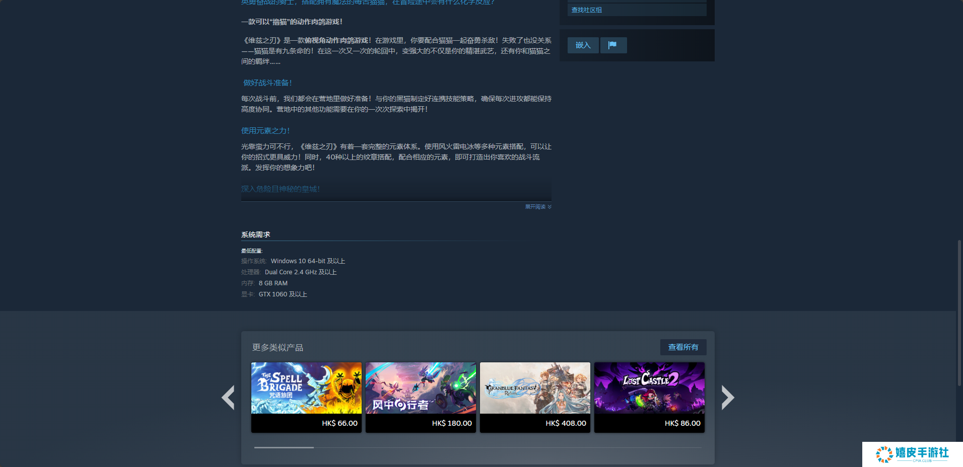 《维兹之刃》是一款非常有趣的俯视角动作肉鸽游戏,而游戏的画面表现非常不错,需要的配置要求也不算高,CPU最低只需要双核 2.4 GHz 及以上的英特尔酷睿或AMD的同级别处理器。