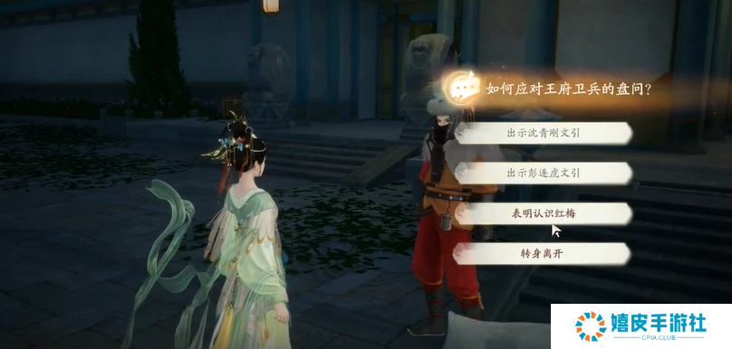 射雕手游主线任务攻略 射雕手游杨康线第二章任务攻略 一、任务完成攻略 1、开局与王府卫兵对话,选择【表明认识红梅】、【疑似故人,暗中观察】;
