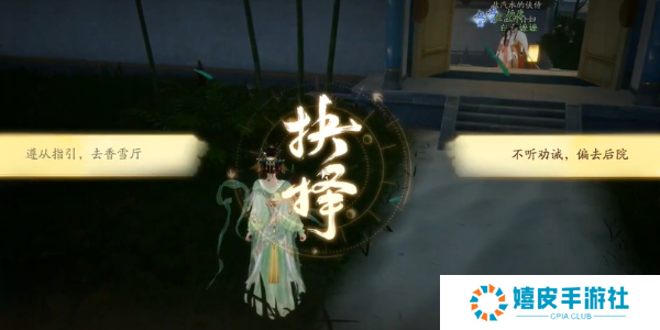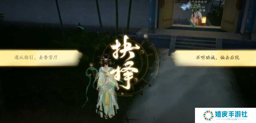 9、将蛇赶回房间后与【汤祖德】对话,与师弟对话选择【不听劝诫,偏去后院】;