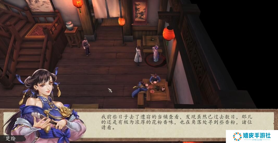 7、去洛阳客栈,与楚绘和姜小哥对话,之后调查血迹,延伸到杂货铺。