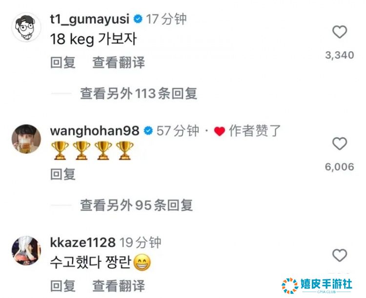 直播吧11月20日讯T1官宣Doran选手加入战队,Doran选手更新ins后,众选手纷纷为其评论,具体内容如下: