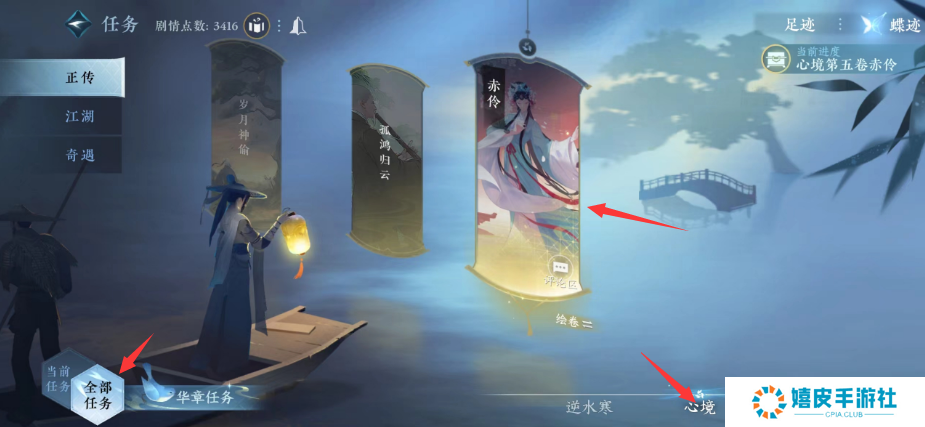 2、点击任务界面的【全部任务】-【心境】找到【赤伶】;