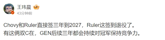 直播吧11月21日讯 昨日GEN官宣新阵容,Ruler和Chovy的重聚不仅让王玮晨感叹道: