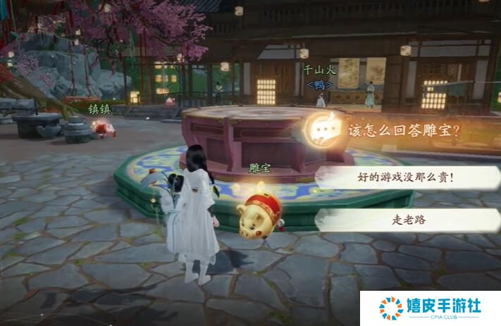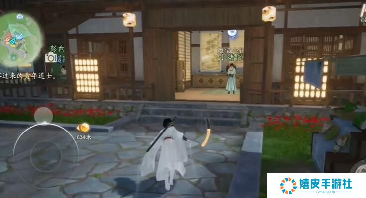4、找到雕宝,进行对话,然后进入前方的屋内。