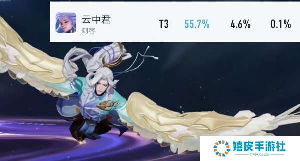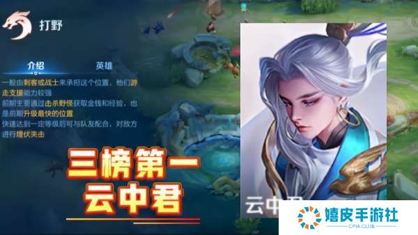 因此,在现在这个版本中,打野位主要是以机制性英雄,或者是半肉刺客为主,毕竟在这个版本的打野位,进场切入的风险相比于之前提高了不少,单纯的爆发显然已经不是第一要素。 例如,马超,镜,澜,都是具备三体人机制的切入英雄。 不过,本期内容要聊的并不是这三位强势打野,而是被我们忽略一个英雄,他就是云中君。 在王者营地的排行榜中,云中君在三榜中排名不是第一就是第二,如果我们综合一下出场率以及胜率的比例,云中君甚至排在了三榜第一。