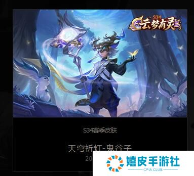 逐花归海-澜:灵鱼拥簇下的飘逸侠客,以利刃守护一方净土 时空谍影-海诺:帅气特工登场,海诺必将解开迷团 觅芳踪-艾琳:蝶妖破茧重生,化故友模样历凡尘悲欢 灵卜魔法-妲己:妲己战令限定皮肤 燃音魔法-高渐离:魔法师弹动魔去扫帚,奏响魔法乐章 荣光圣徽-蒙恬:骁黄善战的蒙恬再披铠甲,和士兵们一同守护家园 天穹祈灯-鬼谷子:S34赛季皮肤
