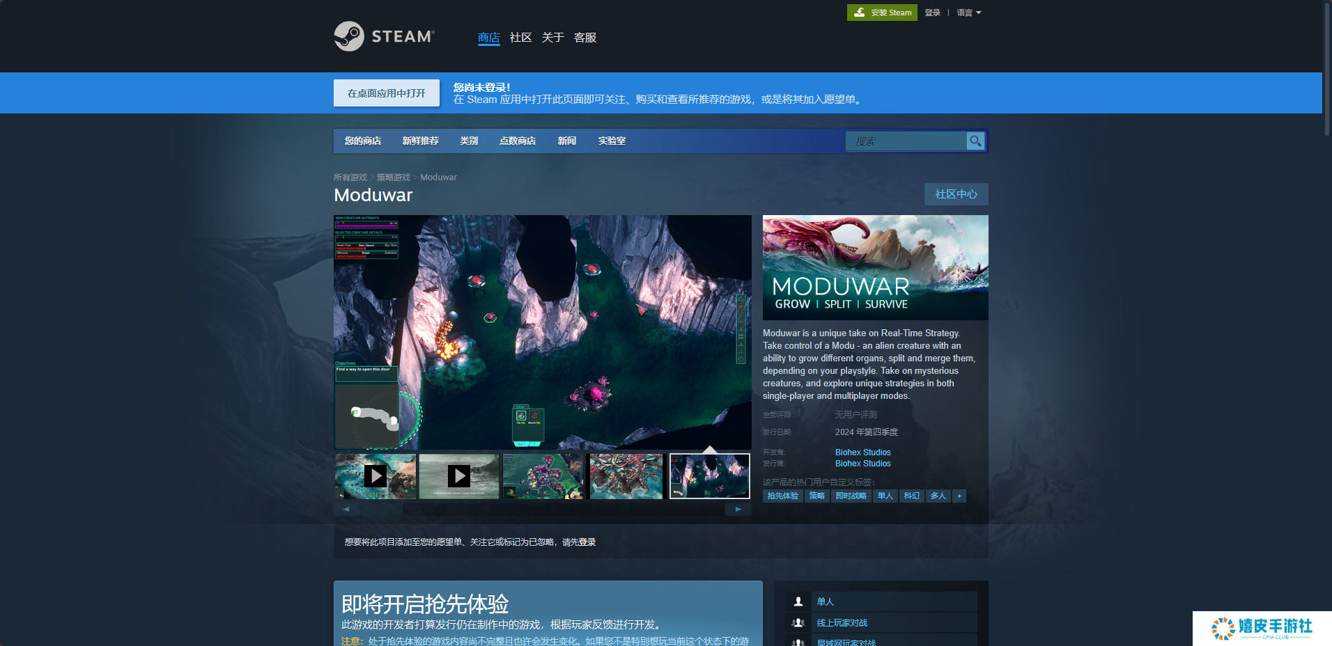 《Moduwar》是一款非常有趣的策略即时战略游戏,而这款游戏想要下载还是比较麻烦的,下载的第一步就是安装Steam平台,然后注册账号登录,并且搜索“Moduwar”,然后点击购买,之后点马上开玩即可。