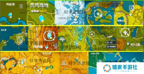 4、如图所示是15处传送点的晶蝶位置,不清楚晶蝶方位的玩家可以参考此图去采集晶蝶。