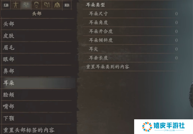 6、耳朵:耳朵尺寸0、耳朵角度0、耳朵开合度0、耳朵傾斜度0、耳尖0、耳垂长度0