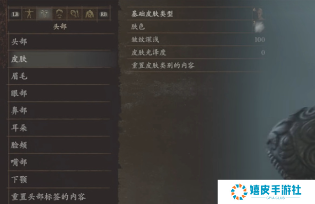 2、皮肤:基础皮肤类型6、肤色5、皱纹深浅100、皮肤光泽度0
