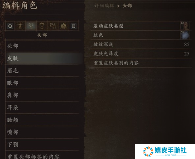 2、皮肤:基础皮肤类型12、肤色57、皱纹深浅85、皮肤光泽度25