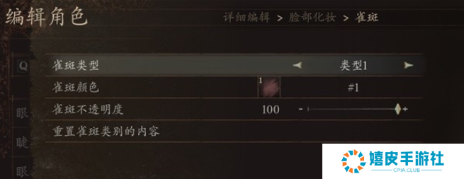 5、雀斑:雀斑颜色1、雀斑不透明度100、雀斑类型1