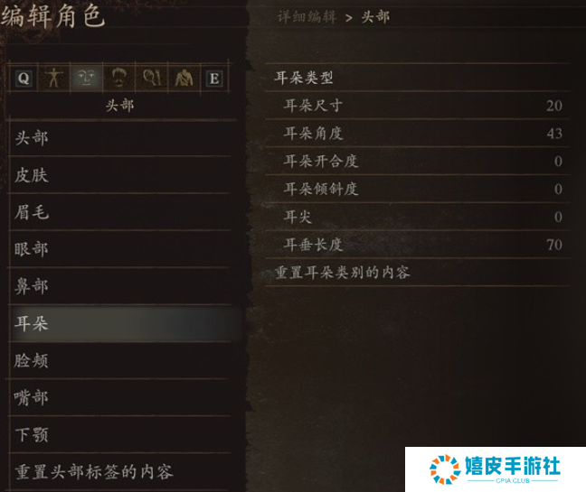 6、耳朵:耳朵尺寸20、耳朵角度43、耳朵开合度0、耳朵傾斜度0、耳尖0、耳垂长度70