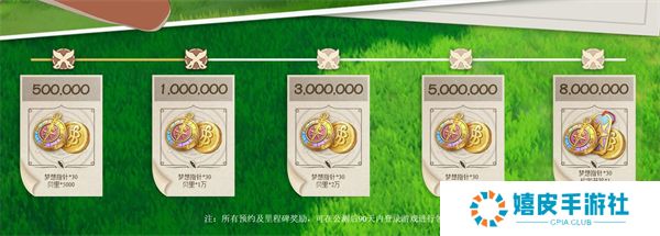 5、【800万预约】:梦想指针*30、珍宝书签*1、贝里*5万。