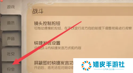 2、之后在设置功能页,点击左侧的【安全】;