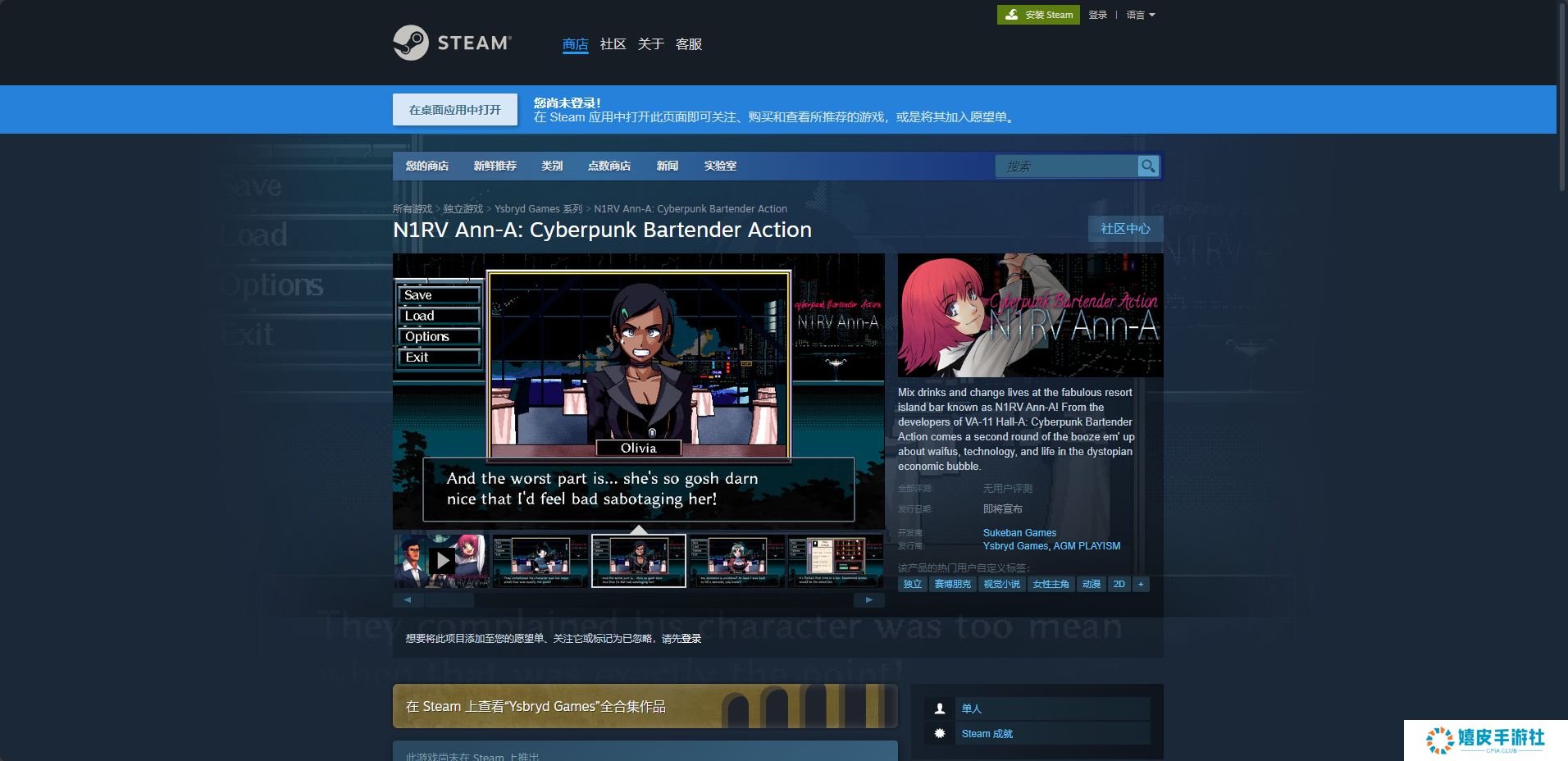 《赛博朋克酒保行动2》是一款关于反乌托邦经济泡沫中的流浪汉、技术和生活的豪饮游戏。而这款游戏想要下载还是比较麻烦的,下载的第一步就是安装Steam平台,然后注册账号登录,并且搜索“N1RV Ann-A: Cyberpunk Bartender Action”,然后点击购买,之后点马上开玩即可。