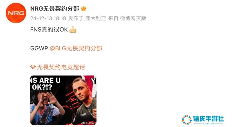 赛后,NRG晒梗图并配文:FNS真的很OK!GGWP。