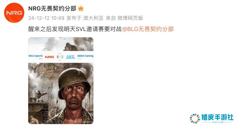 NRG官方整活:醒来之后发现明天SVL邀请赛要对战BLG!