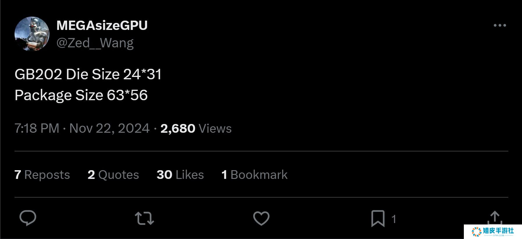 舅舅@MEGAsizeGPU称,GB202 GPU尺寸为744平方毫米(24毫米x 31毫米),而总封装尺寸为3528平方毫米(64毫米x56毫米)。然而,由于封装尺寸包括芯片本身以及电容器、电阻器和其他结构组件,因此它们并不那么重要。