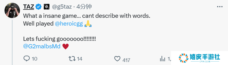 TaZ:多么精彩的一场比赛,难以用语言来形容。 WP HEROIC。 冲冲冲,malbsMd!