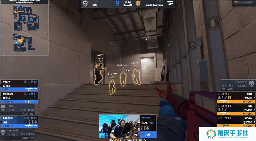 tabseN的这个绕后极有可能改变局势。 在昨天上海Major正赛阶段 BIG对阵 paiN的回家局中,tabseN本人感受到了线下“带刺的魅力”。