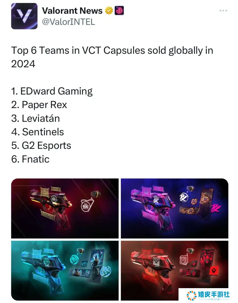 外网媒体Valorant News爆料2024年战队捆绑包的销量前六名,同时该媒体提到,此排名经过了无畏契约电竞主管的确认。