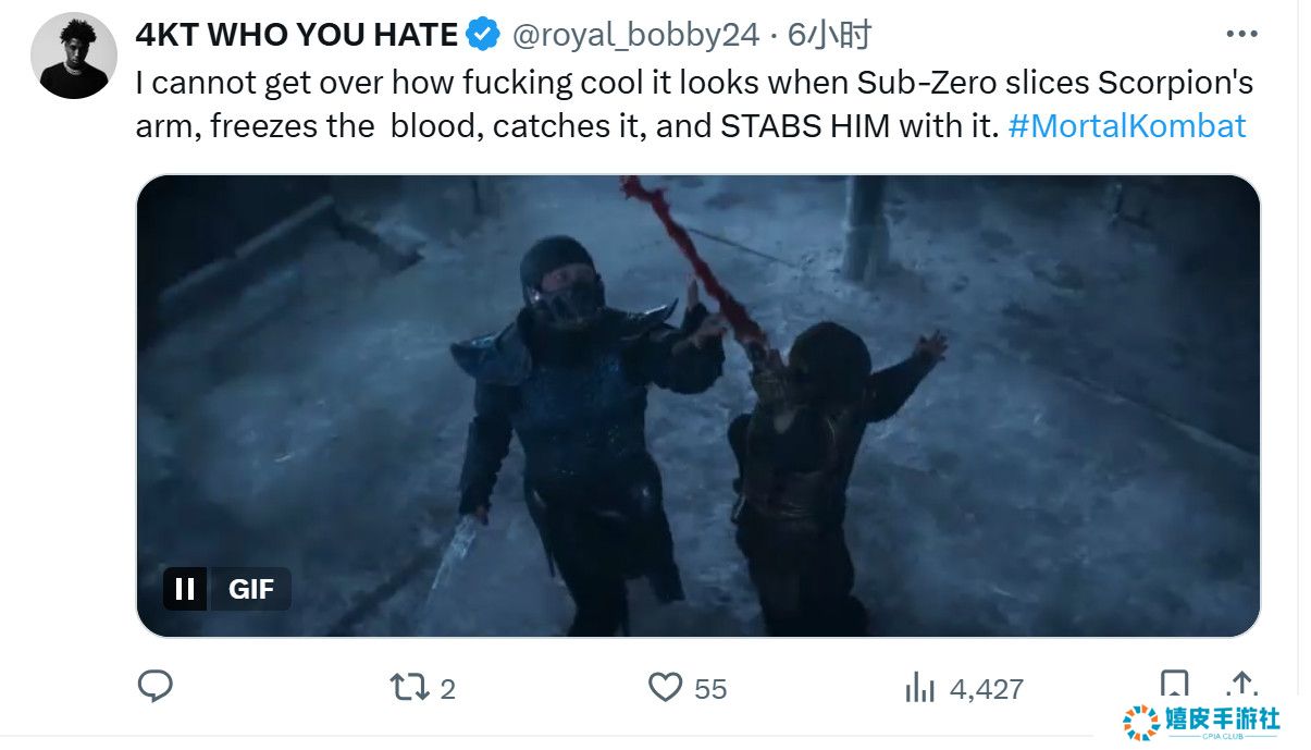 更有国外网友贴出《真人快打1》电影(2021)绝对零度vs地狱火蝎子的对战视频,怀念绝对零度砍伤蝎子,然后将溅出的鲜血冰冻,抓住冻住的血柱然后刺伤蝎子这一行云流水的动作设计,让人大呼过瘾。