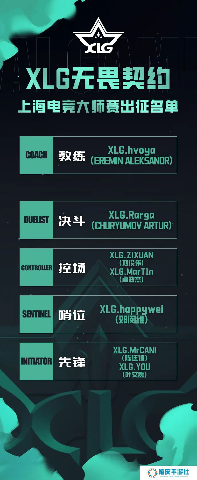 XLG上海电竞大师赛出征名单: