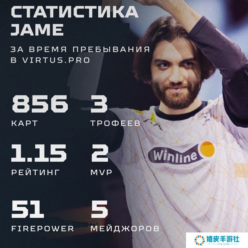 随着Virtus.pro官宣下放Jame,这位俄罗斯狙击手在VP的时光也暂告一段落,外媒统计了他在VP效力的数据。